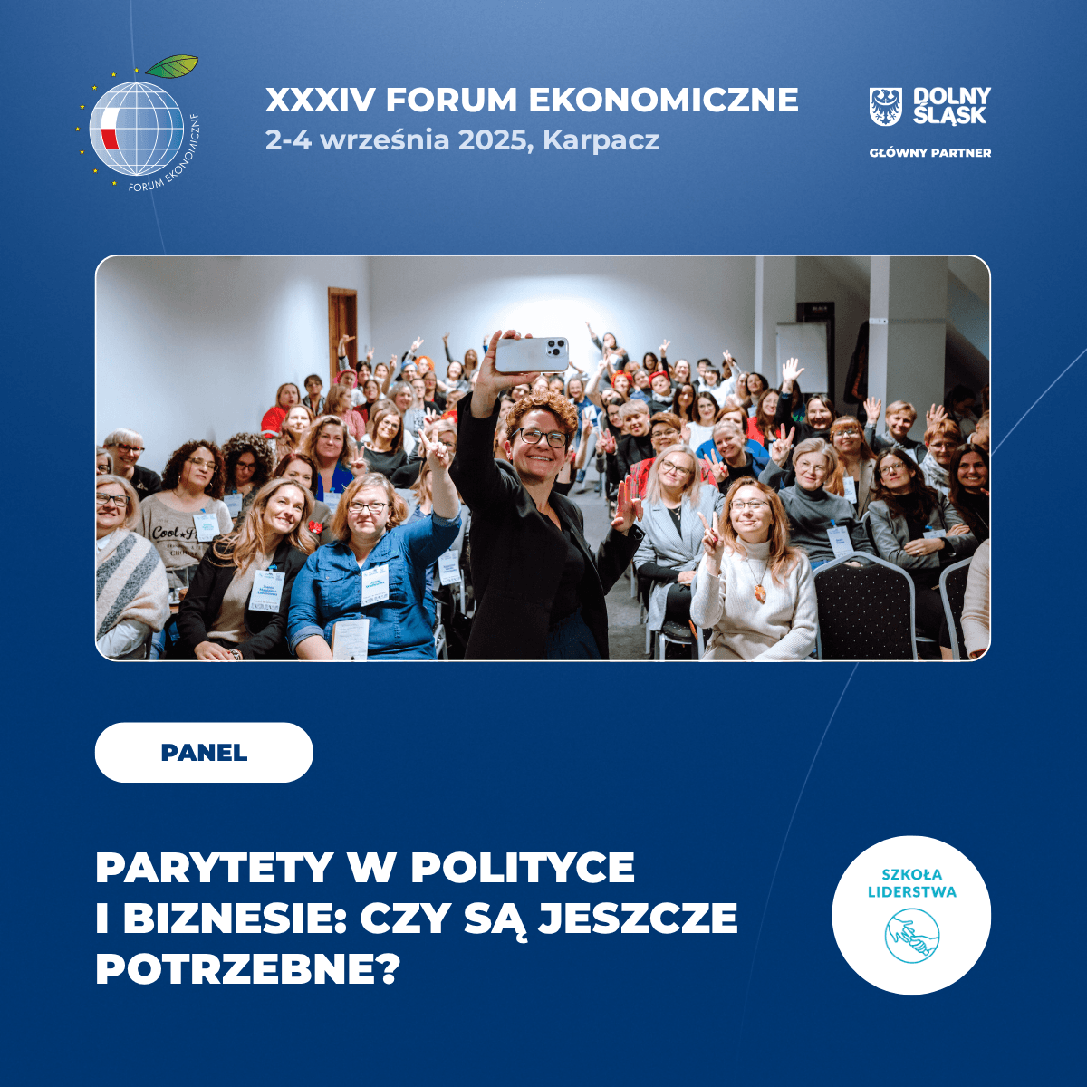 Szkoła Liderstwa serdecznie zaprasza do udziału w Forum Ekonomicznym w Karpaczu (2-4 września 2025). W ramach wydarzenia odbędzie się specjalny panel dyskusyjny poświęcony zagadnieniu parytetów w polityce i biznesie, którego jesteśmy organizatorem.