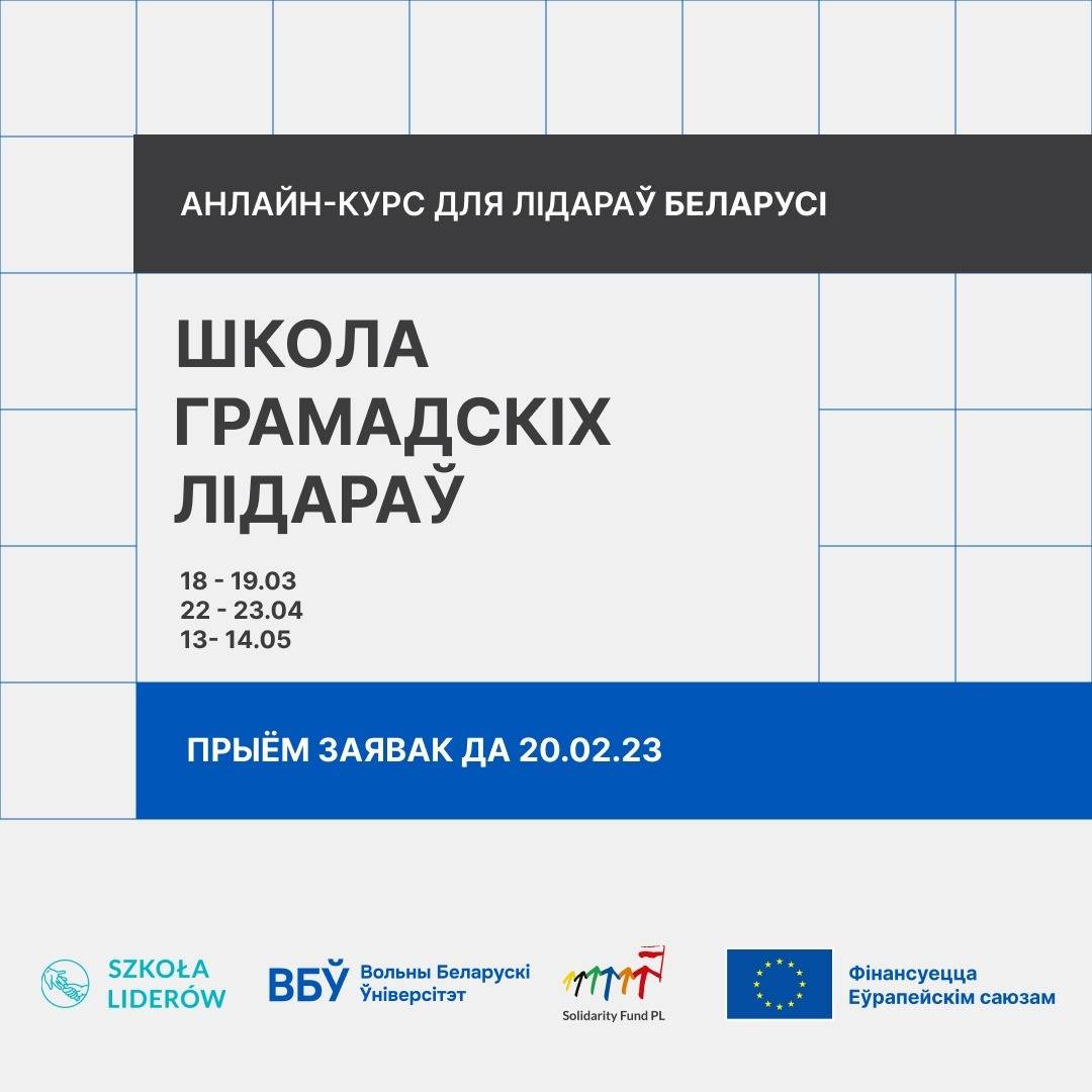 Фонд Школа Лідараў, Вольны Беларускі Ўніверсітэт і Фонд Міжнароднай Салідарнасці запрашаюць падаваць заяўкі на ўдзел у курсе „Школа грамадскіх лідараў”.