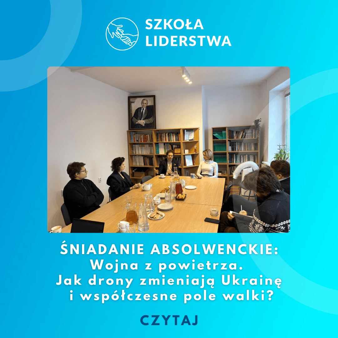 14 stycznia 2026 r. odbyło się pierwsze w nowym roku Śniadanie Absolwenckie Szkoły Liderstwa. Spotkaliśmy się w siedzibie Szkoły, by porozmawiać o jednym z najbardziej przełomowych wymiarów współczesnych konfliktów zbrojnych: nowych technologiach wojennych i ich wpływie na realia wojny w Ukrainie.