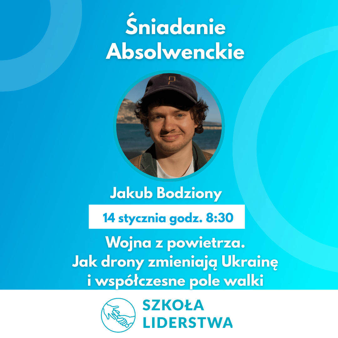 Zapraszamy na pierwsze w 2026 roku śniadanie absolwenckie w biurze Szkoły Liderstwa poświęcone nowym technologiom wojennym i ich wpływowi na rzeczywistość konfliktu w Ukrainie. Punktem wyjścia do rozmowy będzie najnowszy reportaż Jakuba Bodzionego o dronach – pisany na podstawie kilku tygodni spędzonych w Ukrainie, blisko frontu, ale też w szkołach, prowizorycznych fabrykach i mieszkaniach zamienionych w linie produkcyjne.